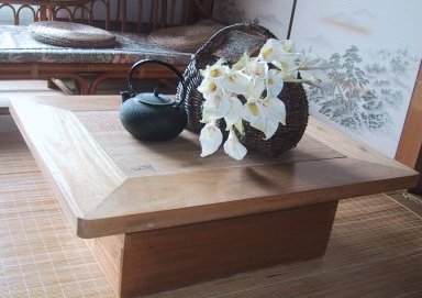 <材料> ビロード・クレープサテン・うす絹 一枚の花びらの組み立て、葉も一枚付けなので簡単にできた。芯も手作りで、コットンをワイヤーに小指大に巻きつけ、ボンドをたっぷり付けた後薄黄色に色づけした粉ペップをまぶしていく。 清楚なのに存在感がある。 |